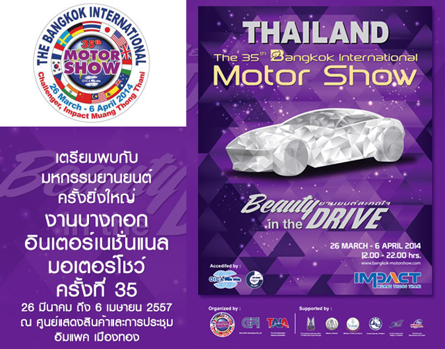Bangkok International Motor Show ครั้งที่ 35 งานจัดขึ้นระหว่างวันที่ 26 มีนาคม - 6 เมษายน 2557 ณ อาคารชาเลนเจอร์ 1 - 3  Impact  เมืองทองธานี ภายใต้ โดยในปีนี้มีชื่องานว่า “Beauty in the Drive – ยานยนต์สะกดใจ”  ซึ่งภายในงานมีค่ายรถมากมายหลายยี่ห้อได้เตรียมนำ รถเปิดตัวใหม่ และ รถต้นแบบ นำมาจัดแสดงโชว์และที่ขาดไม่ได้คือ Pretty สุดเซ็กซี่ มากมายภายในงานอีกด้วย
